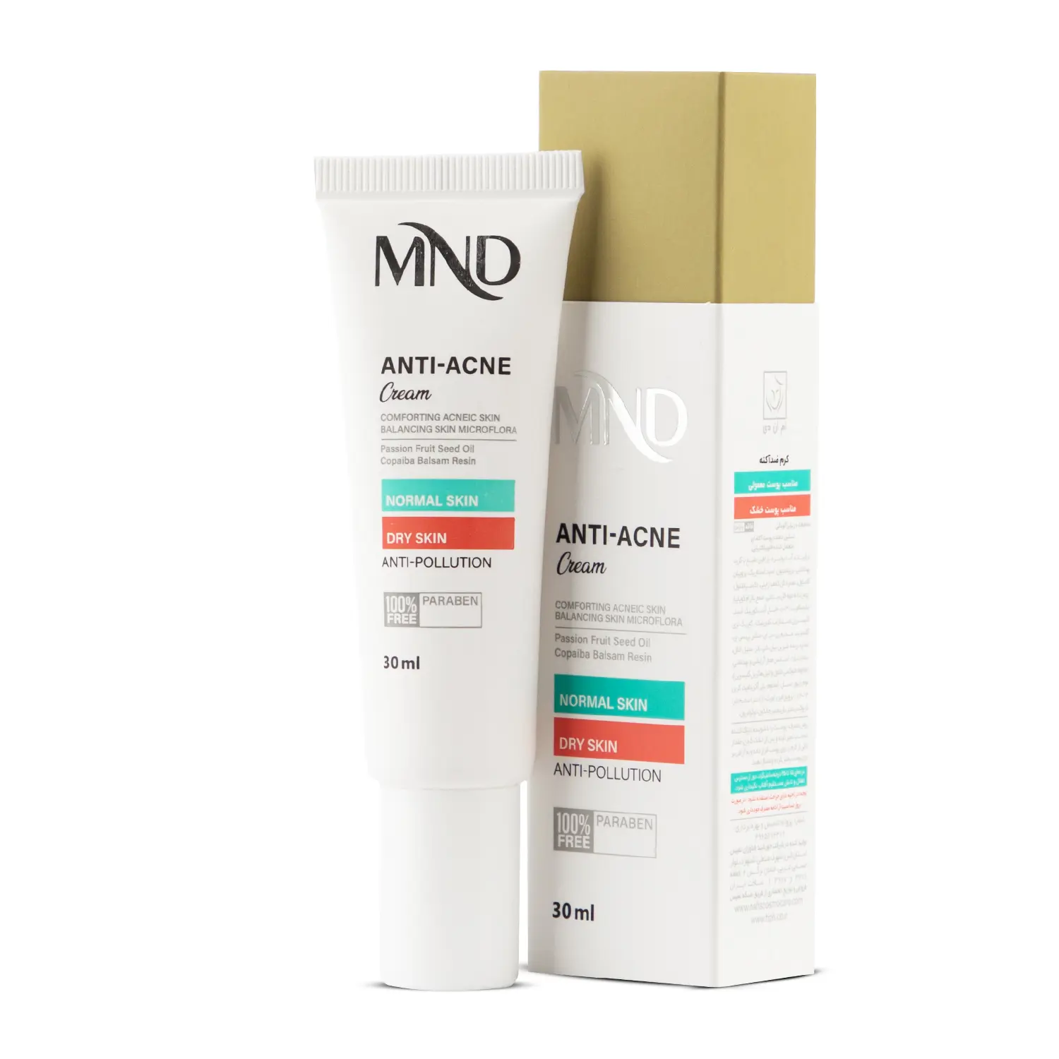 کرم ضد آکنه مناسب پوست خشک و معمولی ام ان دی 30 میلیلیتر