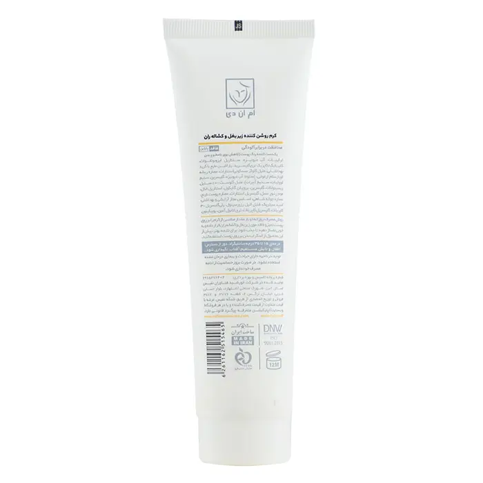 نقاطی از بدن مانند آرنج زیر بغل و ... به دلایل مختلف ممکن است دچار تیرگی شوند. کرم روشن کننده زیر بغل و کشاله ران ام ان دی با کنترل تولید ملانین و وجود ترکیبات موثر در خود علاوه بر محافظت از پوست در برابر آلودگی کمک به روشن شدن این نقاط و کاهش بوی بد میکند.